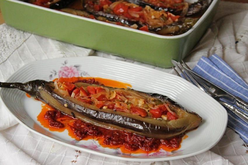 Diğer tarafta hazırladığınız iç malzemeyi patlıcanların içine birer yemek kaşığı miktarında doldurun. Doldurma işleminiz bittikten sonra kalan sosu tepsinin yan tarafından dibine gelecek şekilde dökün.